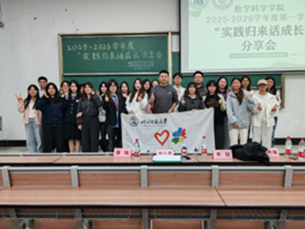 “实践不是远方的口号,而是脚下的泥土与手心的温度。”2025年11月2日晚,数学科学学院2025级“实践归来话成长”首场分享会在狮子山校区7教313举行。本次活动由四川师范大学数学科学学院分团委社会实践与志愿服务部主办,活动为同学们搭建起了实践交流的桥梁,助力大家深化对实践意义的认知。