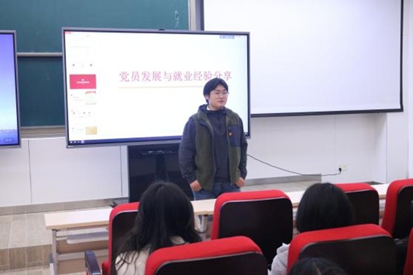 首先,学院遴选了4位优秀的学生党员进党校课堂进行交流。研究生支部副书记李汶同志首先围绕“党员发展与就业经验”进行了主题分享。她系统梳理了从发展对象到成为一名正式党员的完整流程,详细介绍了各阶段的具体要求与注意事项,包括集中培训、思想汇报、政审、支部大会表决等关键环节需要注意的事项。她还结合自身数学专业背景,深入解析了成都市教师招聘政策,涵盖有编制与无编制教师的不同招聘形式、考试内容、岗位需求以及职业发展路径,并分享了在求职过程中的独特优势与准备策略,为大家的职业规划提供了可借鉴的经验。