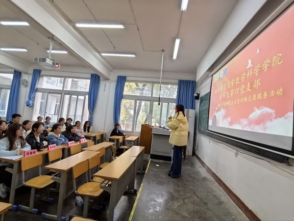 20251130日下午14:30在狮子山校区第三教学楼,数学科学学院本科第四党支部组织党员到教育艺术社团开展专项志愿服务活动。本次活动围绕师范生技能提升开展专项训练,助力师范生夯实教学基本功、提升教育实践能力。