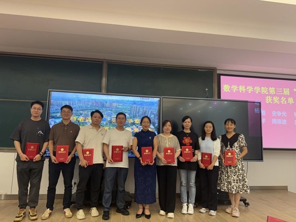 接着,数学科学学院党委书记屈加文为第三届“最美教师”获奖者颁发荣誉证书。学院第三届“最美教师”获奖者是:哈书敏、吕王勇、史争光、杜承勇、张永乐、杨晓梅、周小平、周思波、左恒、邱丹。
