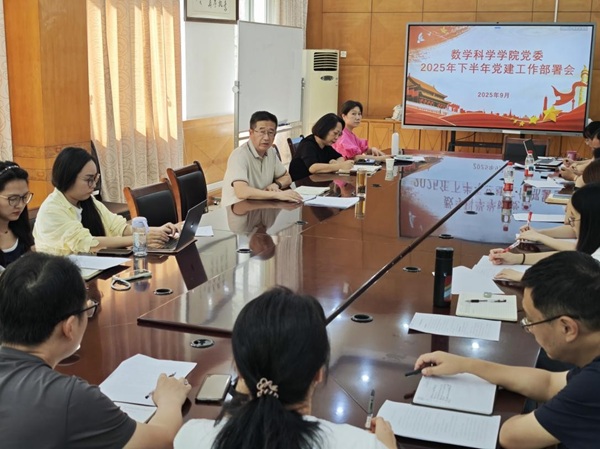 9月24日,数学科学学院党委在学院205会议室召开2025年下半年党建工作部署会暨党支部书记例会。参加会议的有学院党委书记屈加文、党委副书记兼纪委书记任茜,以及全体党支部书记、副书记,会议由学院党委书记屈加文主持。