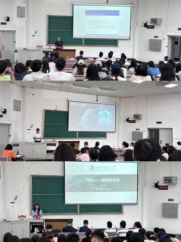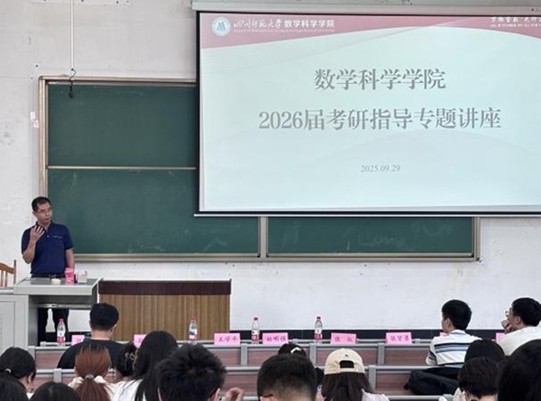 为切实解决2022级学子考研备考阶段的迷茫困惑,帮助同学们规划研途,四川师范大学数学科学学院在狮子山校区7教418教室成功举办考研导航专题讲座,为学子们搭建起与学院优质师资、科研方向深度对接的桥梁。出席本次讲座的有数学科学学院副院长柏明强、学院党委副书记兼纪委书记任茜,以及学院各科研团队教师代表、2022级辅导员以及全体考研学子。