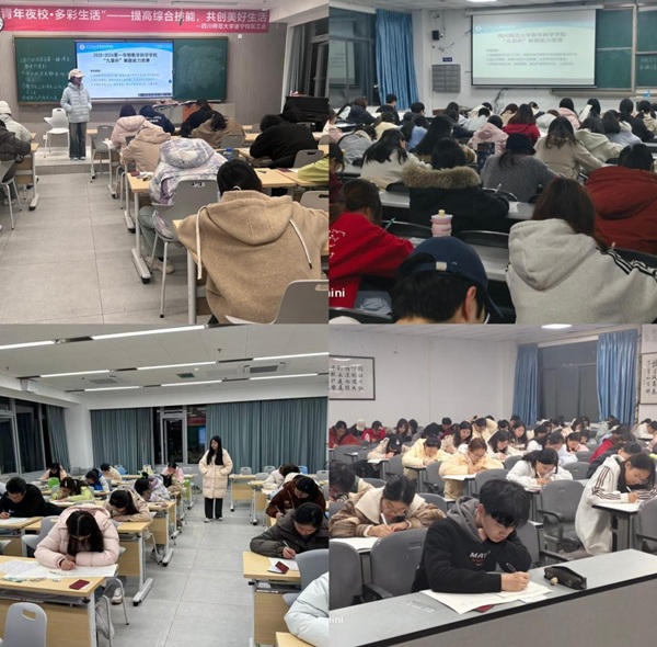 2025年数学科学学院“九章杯”秋季解题能力竞赛于11月23日在狮子山校区与遂宁校区正式举行。本次活动由四川师范大学数学科学学院教育艺术社团和遂宁校区数学与应用数学系共同承办,共有300多名同学参加本次竞赛。